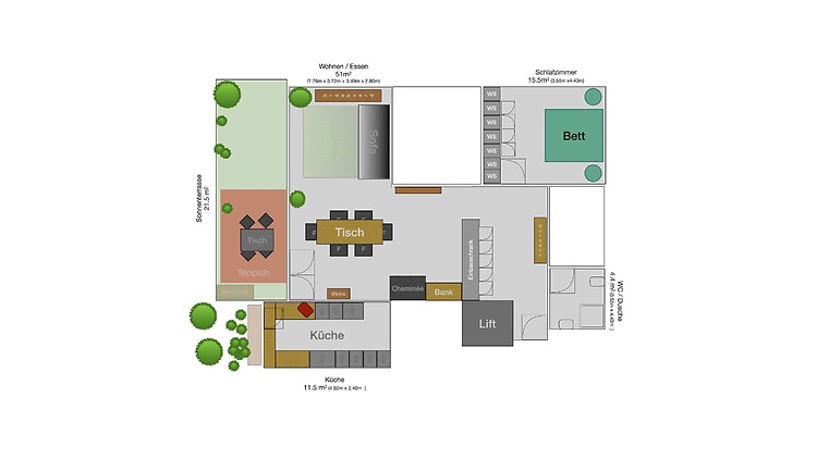 82m², im Sousparterre mit Lift, 1 Schlafzimmer, rollstuhlgängig, mit Kamin/Cheminée, in Altbau, in gutem Zustand