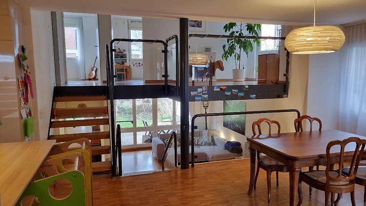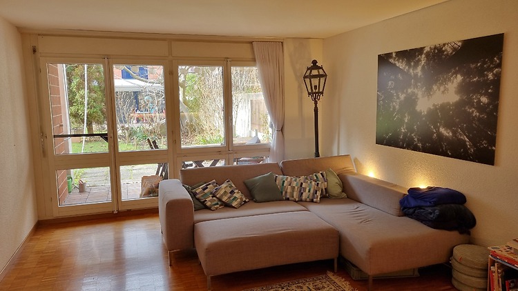 125m², im Parterre, 2 Schlafzimmer, 1 Büro (kann als Schlafzimmer benützt werden), mit Kamin/Cheminée, in gutem Zustand