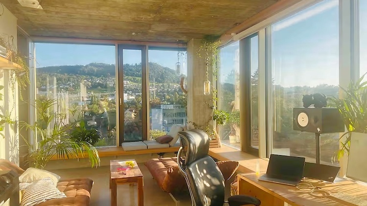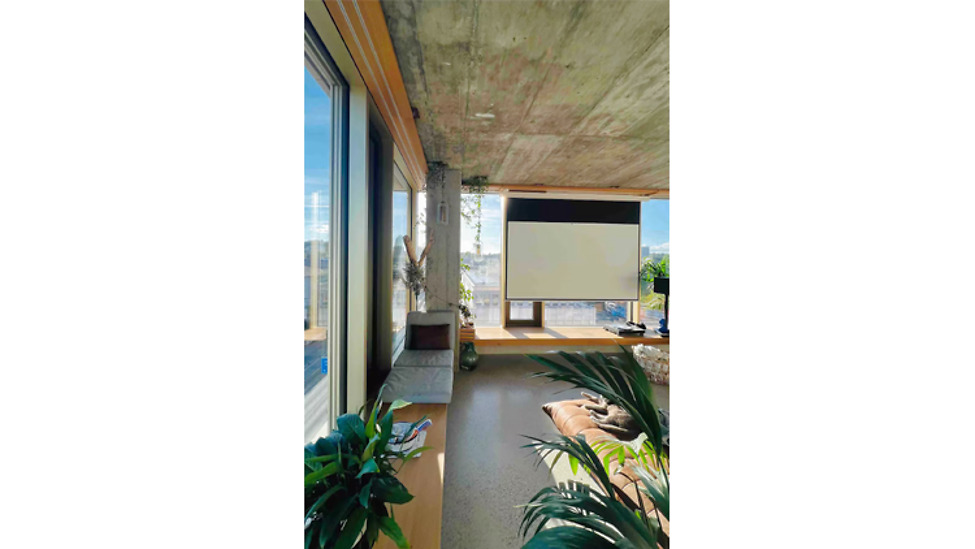 premium chair, projector, height adjustable working desk, 34" curved screen