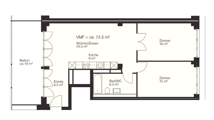 75m², im 7. Stock mit Lift, 1 Schlafzimmer, 1 Büro (kann als Schlafzimmer benützt werden), in Neubau, Luxuriöses Objekt, in neuwertigem Zustand