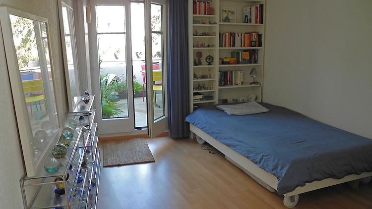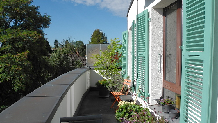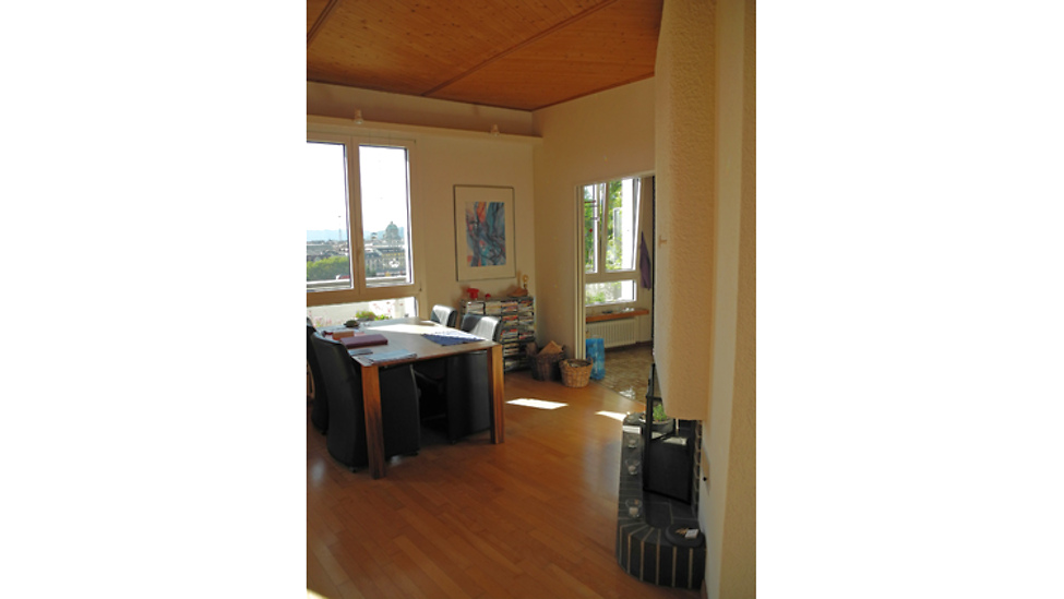 Helle Wohnung im 4. Stock (ohne Lift) mit grandioser Aussicht über die Stadt und in die Alpen. Cheminée. Anfragen für die ganze Mietdauer werden bevorzugt.