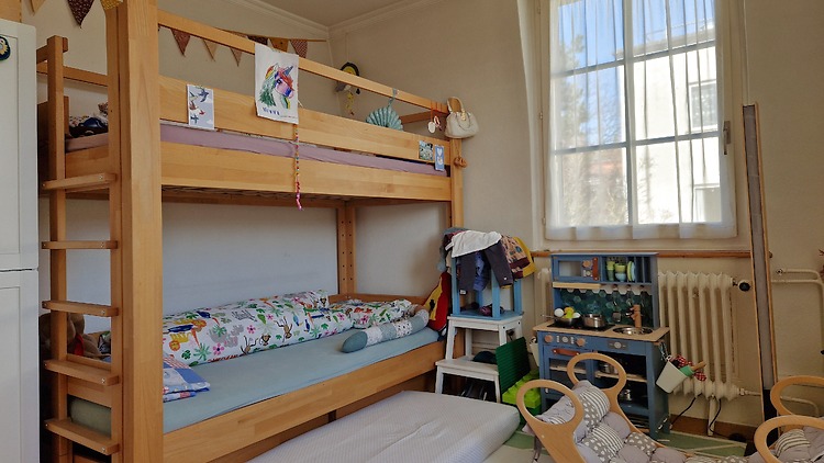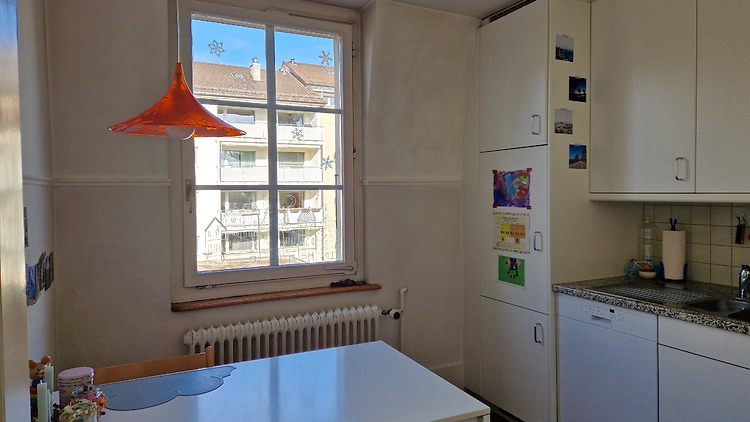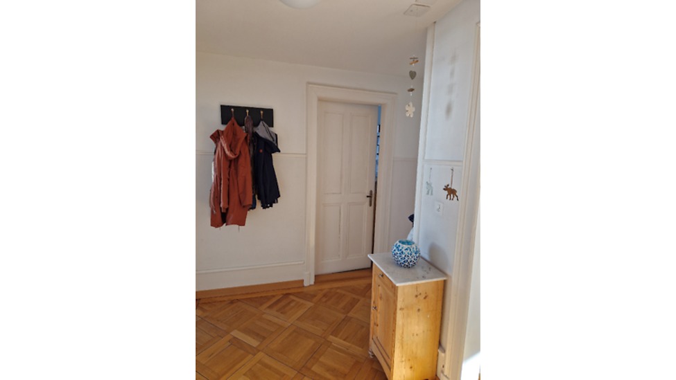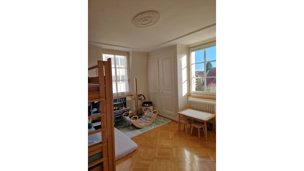Altbauwohnung mit zwei grösseren, sonnigen Zimmern. Die Wohnung hat noch ein kleines Zimmer, das wir abschliessen werden. Es wird nach Absprache entsprechend umgestellt.