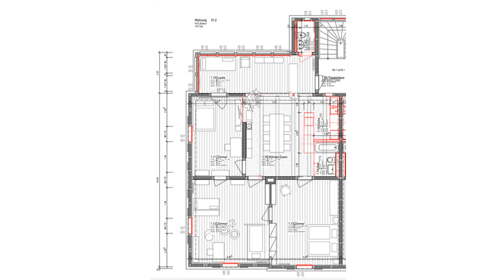 114m², im 1. Stock, 3 Schlafzimmer, in Altbau, in gutem Zustand