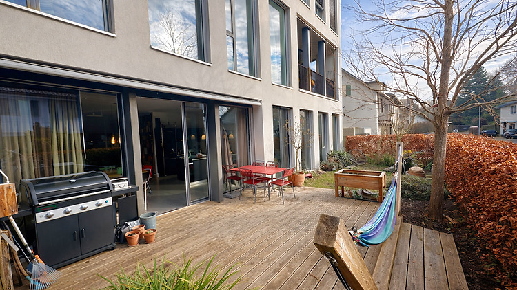 Grosszügige, moderne Loftwohnung im EG mit viel Licht & Gartenterrasse. Ruhiges Quartier und nur 6 Min. mit Zug in Zentrum Bern. Viel Platz – ideal auch für temporäre Übergangslösungen.