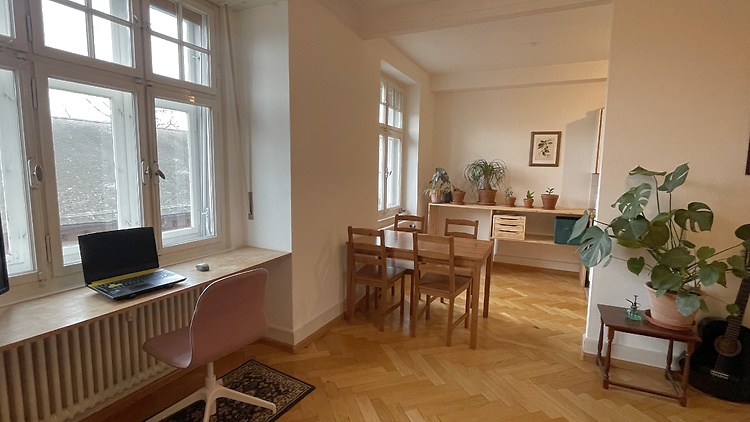 Möblierte Wohnung mit hellem Wohnzimmer (einschließlich einer Tatami-Workout-Entspannungsecke!) Doppelzimmer mit Blick auf einen ruhigen Innenhof, Badezimmer mit Badewanne und Balkon. Tolle zentrale Lage.
