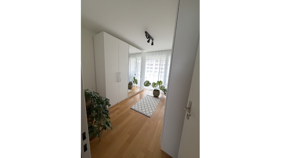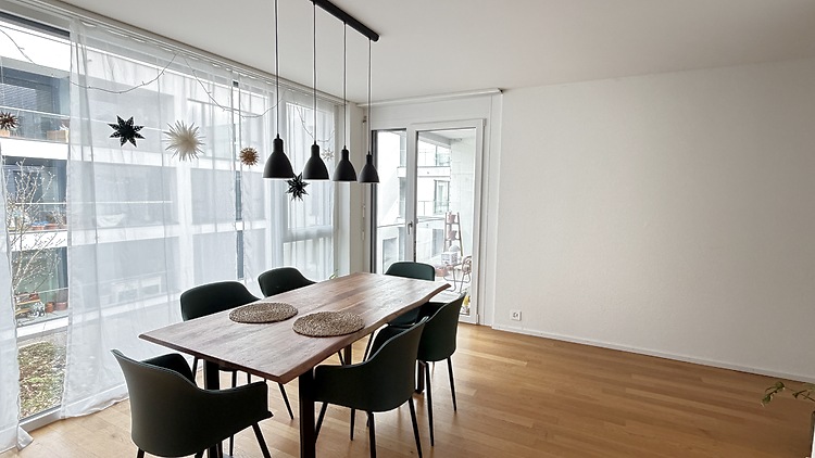 Moderne Wohnung in einem ruhigen, grünen und gleichzeitig stadtnahen Wohnquartier direkt an der Aare. 103 m2 Wohnfläche + eine Loggia (5.6m2) und ein grosszügiger Balkon mit Abendsonne (30.6 m2).