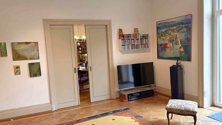 113m², 1 Schlafzimmer, 1 Büro (kann als Schlafzimmer benützt werden), mit Kamin/Cheminée, in Altbau, in gutem Zustand