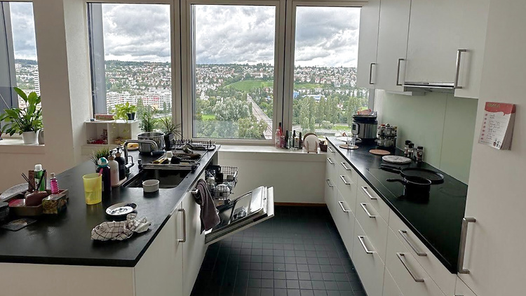 Eckwohnung mit grossen Fenstern im 16. Stock.
