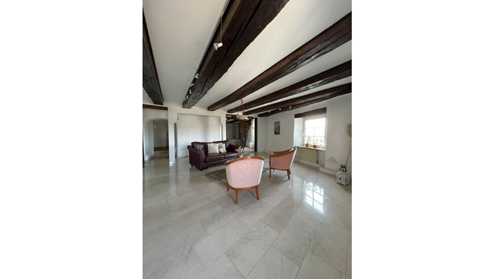 Die loftartige Wohnung mit 4 1/2 Zimmern liegt in einem historischen Gebäude und wurde sehr geschmackvoll und hochwertig renoviert. Zentrumsnah, grandioser Weitblick über das Birstal, viel Natur.
