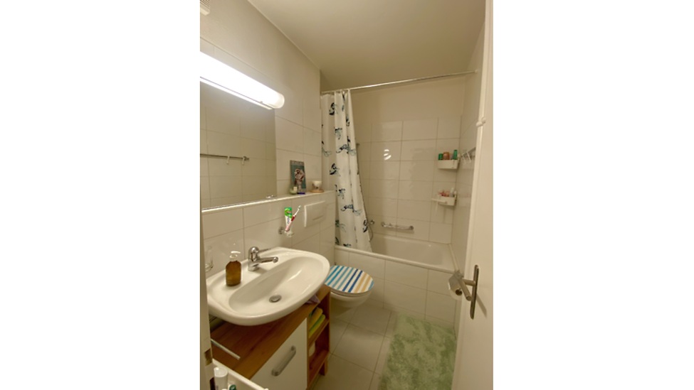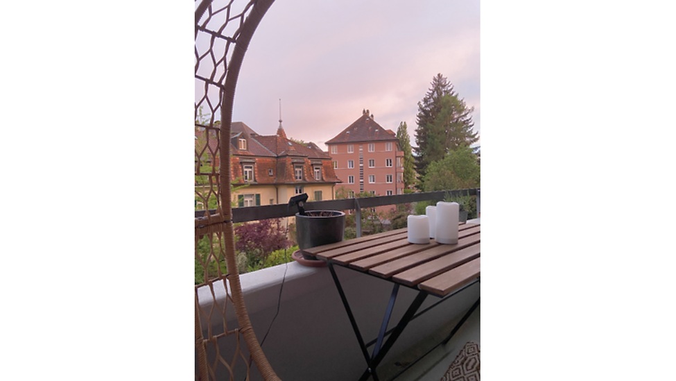 Vollständig möblierte Wohnung mit sonnigem Balkon. Ein Schlafzimmer wird allerdings zur gelegentlichen Eigenbenutzung gebraucht und steht daher nur nach Rücksprache zur Verfügung.