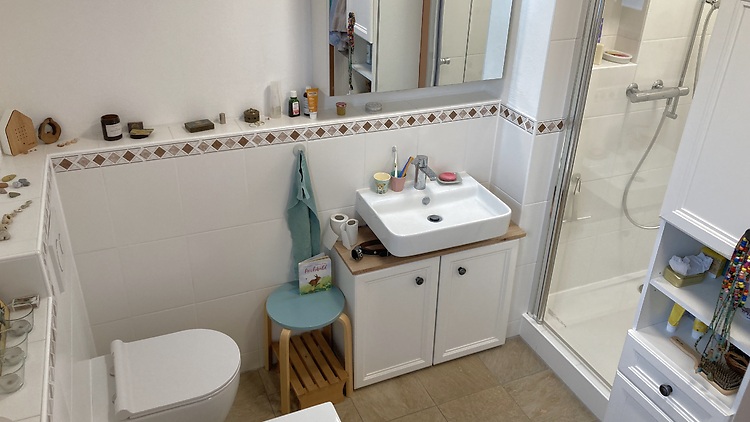 im 1. Stock, 1 Schlafzimmer, 1 Büro (kann als Schlafzimmer benützt werden), mit Kamin/Cheminée, in Altbau, frisch renoviert, in gutem Zustand, in gebrauchtem Zustand, in sehr gebrauchtem Zustand