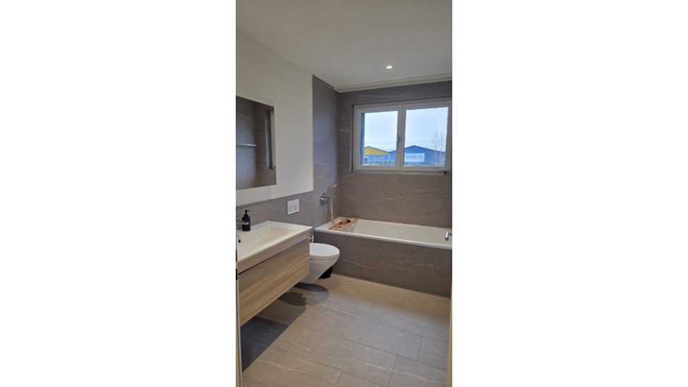 Moderne, helle 2.5-Zimmer-Wohnung in Rickenbach. Erstbezug 2021, sehr gepflegt, möbliert, grosse Fenster, Waschturm in Wohnung, zentral gelegen, Einkauf & ÖV in wenigen Minuten erreichbar.