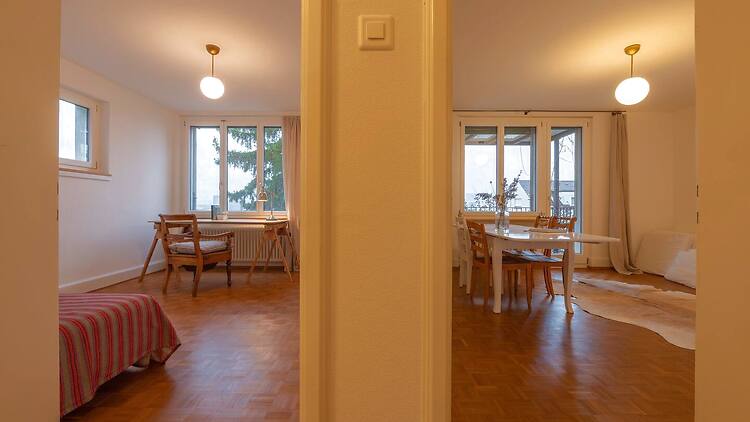 Ruhige, stilvolle, möblierte und voll ausgestattete 3-Zimmer-Wohnung in Zürich-Höngg. Grosser Balkon mit Blick auf die Stadt Zürich und die Alpen. Nur 15 Minuten vom Stadtzentrum entfernt. Wöchentliche Reinigung.