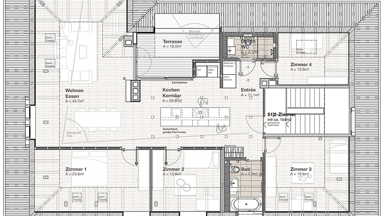 154m², on 3. floor, 3 bedrooms, 1 home office, in older building, in good condition