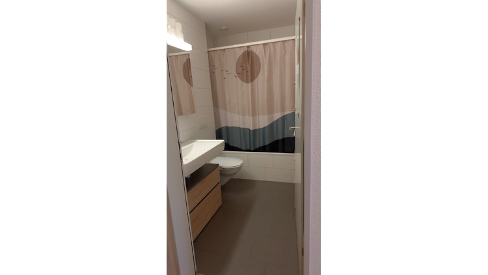 Modern, spacious, furnished 3.5 room apartment on the ground floor in a quiet location with parking space. Bright rooms and a large terrace. Public transport connection to the city of Bern in 5 minutes by S-Bahn and bus.