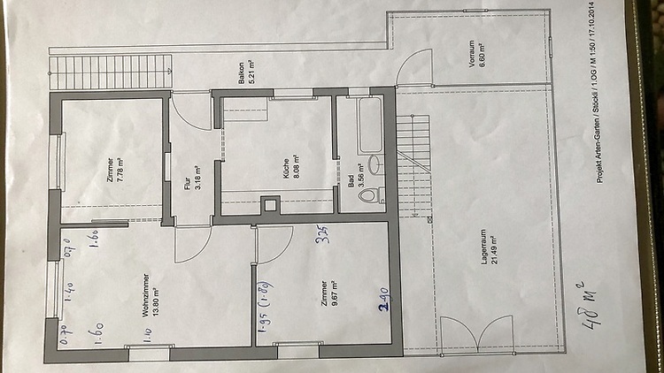 50m², on 1. floor, 1 bedroom, 1 home office (can be used as bedroom), in older building, in good condition, in used condition