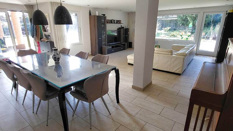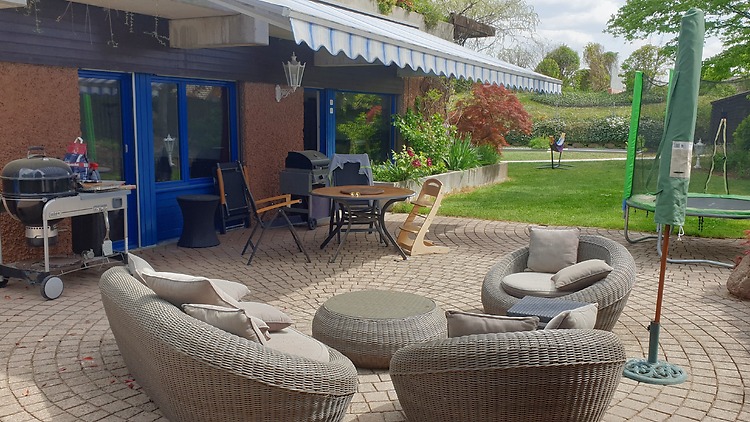 Bright furnished family home with big private garden and terrace in quiet Dübendorf. Spacious living area, ideal for families or professionals seeking a comfortable temporary stay near Zurich.