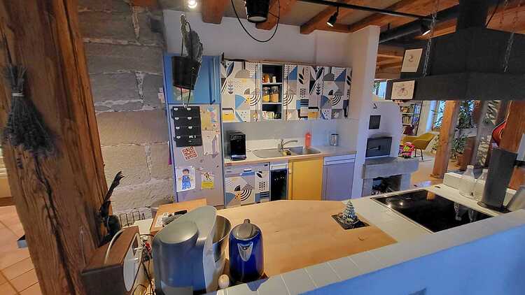 Charming, furnished apartment in 190-year-old house with sandstone walls and open kitchen.