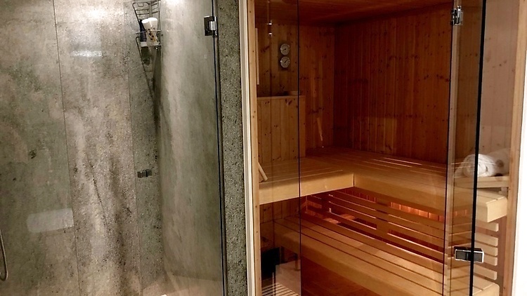 it has a Sauna; 2 full baths and 1 guest bath room with just toilet and sink