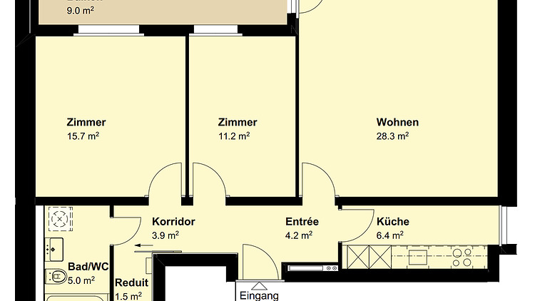 Fully furnished apartment at Altstetten train station! Three rooms (bedroom, guest room, living room) + kitchen + bathroom. Large balcony facing Uetliberg :)
