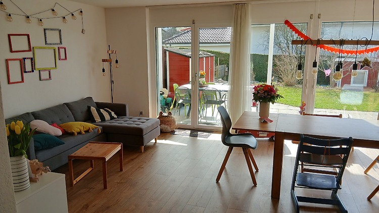 We have been living with our three children in our semi-detached house in Busswil near Lyss since 2020. The house is a real space miracle with a beautiful garden and is located in a quiet neighborhood. There are two parking spaces, which are usually free.