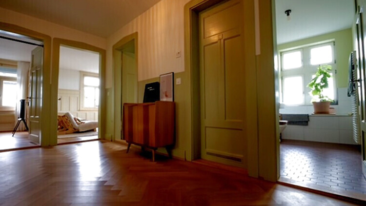 120m², on 2. floor, 2 bedrooms, 1 home office, with fireplace, in older building, recently renovated