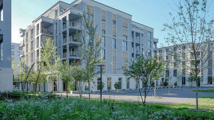 Centre-ville avec gare, nombreuses maisons anciennes, au nord de la gare Oerlikon: quartier en vogue avec des bâtiments modernes d'une architecture intéressante.