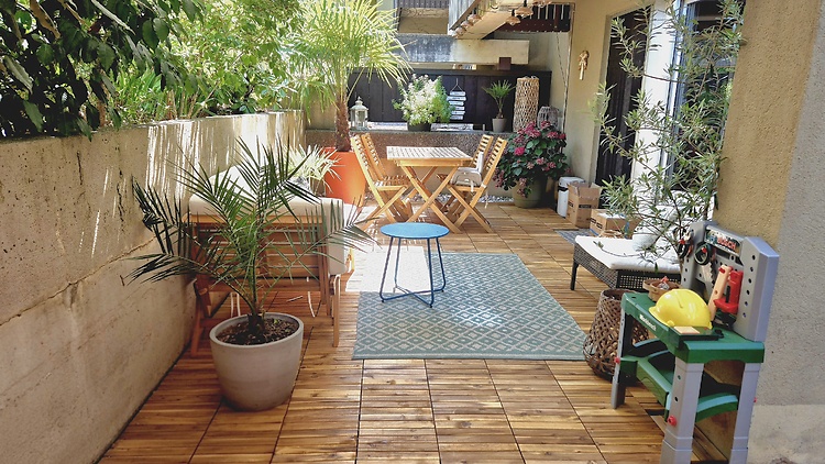 Appartement lumineux, grande pièce à vivre (salle à manger ouverte sur le salon) qui donne sur une grande terrasse de 25 m2. Cuisine équipée. Une salle de bain, wc et 2 chambres.