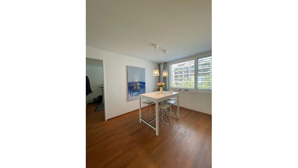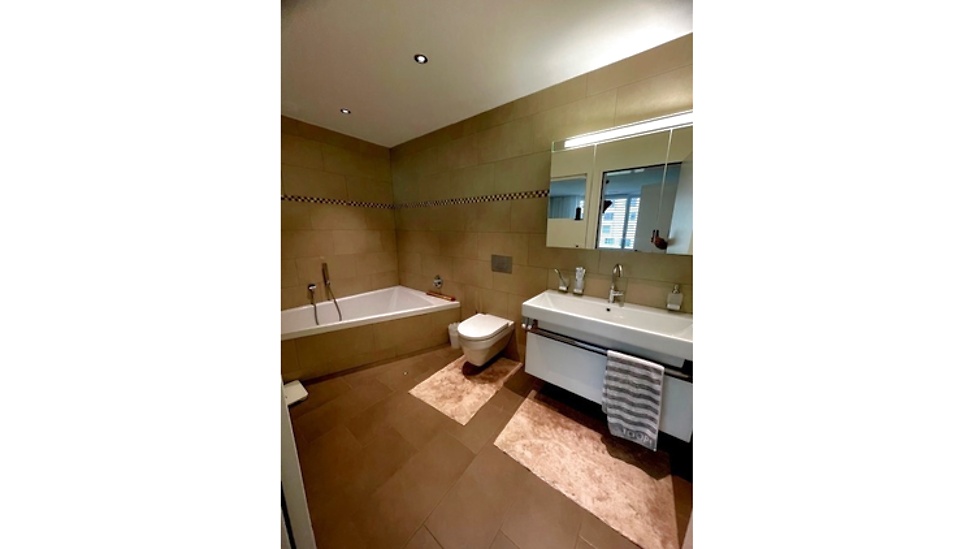 Appartement moderne et baigné de lumière. Excellent état, construction conforme aux normes du propriétaire, salle de bain avec toilettes et douche séparée avec toilettes. Grand quartier résidentiel très calme, à 5 minutes de la gare, à 3 minutes du lac/parc.