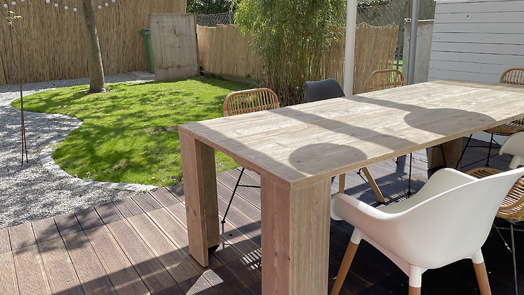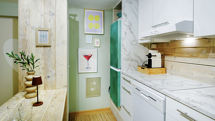 Cuisine neuve récemment meublée, tout est fraîchement peint. Parquet en chêne.