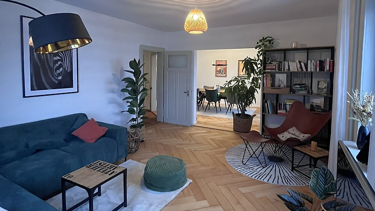 110m², au 2. étage, 1 chambre à coucher, 1 bureau, dans bâtiment ancien, récemment rénové
