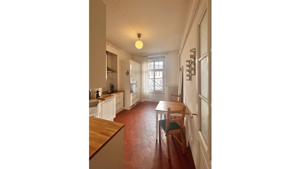 100m², au 3. étage, 1 chambre à coucher, 1 bureau (peut servir comme chambre à coucher), dans bâtiment ancien, en bon état