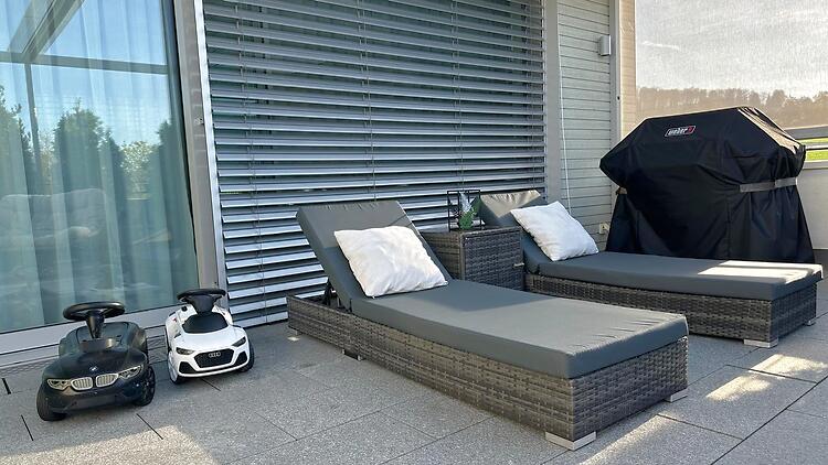 Entièrement meublé avec un lit king-size, une télévision de 85 pouces, un canapé, une table à manger, un bureau, une chambre d'enfant