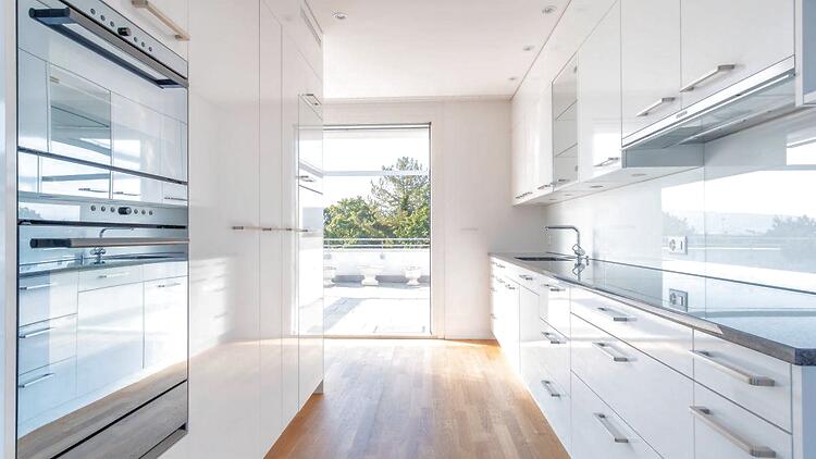 cuisine ouverte, lave-vaisselle, appareil à vapeur, cafetière