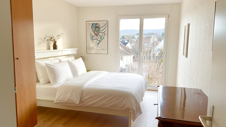 Appartement lumineux et meublé de 3½ pièces (110 m²) à Therwil, 3ème étage avec ascenseur. 2 balcons (1 couvert, sud), cuisine, salle de bain & WC invités, buanderie, place de parking dans le garage. Vue magnifique !