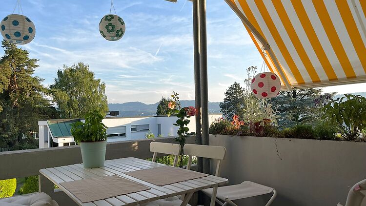 Appartement meublé de 4,5 pièces dans un endroit calme de Küsnacht. 110 m² avec terrasse, vue sur le lac, cheminée, cuisine équipée, blanchisserie privée et parking. Proche des transports, des commerces et des écoles.