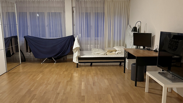 Cet appartement lumineux d'une seule pièce est étonnamment spacieux et offre beaucoup d'espace au sol - suffisamment pour accueillir confortablement une petite séance d'entraînement de Lindy Hop.
