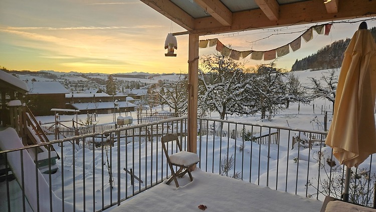 Maison en bois confortable à sous-louer, maison de 5 1/2 pièces partiellement meublée, grand jardin, serre et annexe avec petit atelier