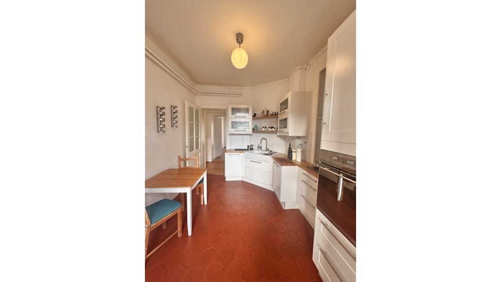 100m², au 3. étage, 1 chambre à coucher, 1 bureau (peut servir comme chambre à coucher), dans bâtiment ancien, en bon état
