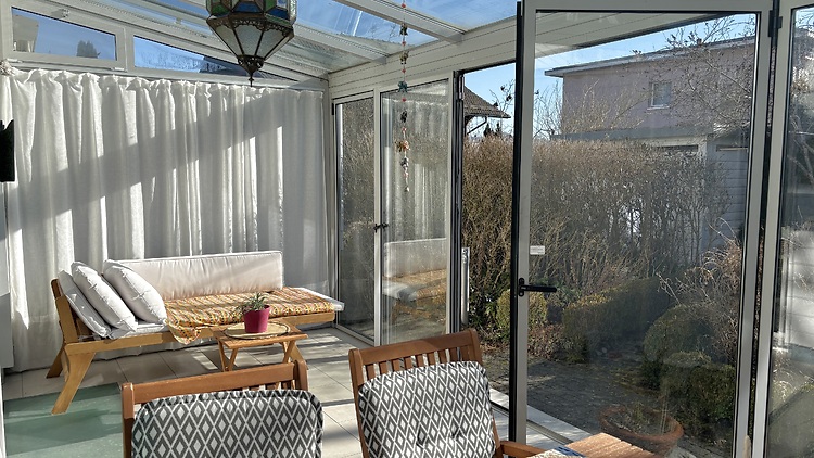 Jolie maison mitoyenne sur 4 étages de 147m2 dans la verdure avec jardinet de 46m2 et jardin d'hiver de 16m2. Terrasse au dernier étage. Meublée avec goût. Maison claire et agréable à vivre.