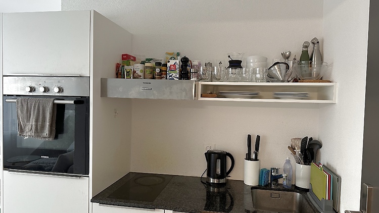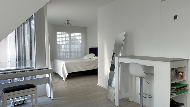 Studio moderne et lumineux à Zurich Altstetten. Entièrement meublé et équipé (four, lave-vaisselle, balcon, cave privée, buanderie partagée). Idéal pour couples ou personnes seules.