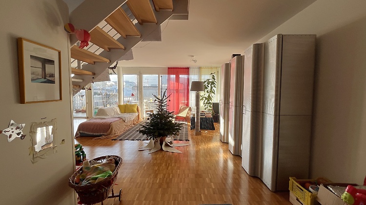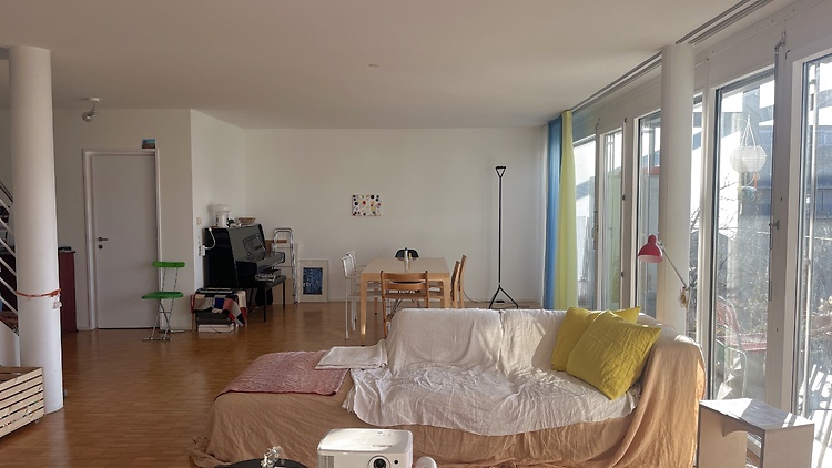Appartement en duplex avec grand salon/salle à manger ouvert, cuisine, deux salles de bains, deux grands balcons, trois chambres à coucher, situé dans la maison Theo Hotz à Altstetten. Quartier très lumineux, calme et accueillant. L'appartement est adapté aux enfants et équipé pour eux.