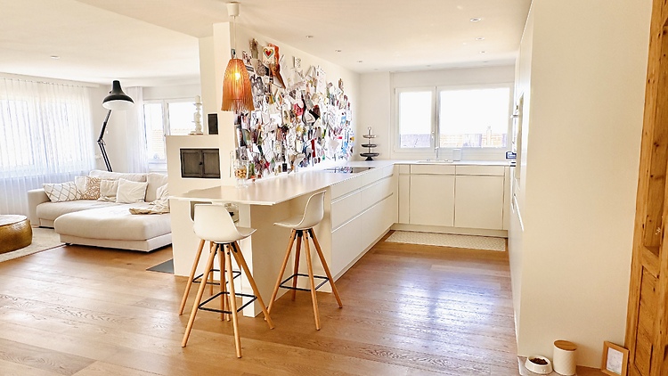 Nous louons notre maison individuelle lumineuse et bien entretenue à Untereggen. Elle offre un agencement spacieux et une vue imprenable sur le lac de Constance.
