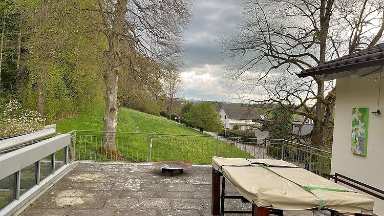 Appartement moderne et lumineux de 2.5 pièces, situation calme, directement à la lisière de la forêt, avec une très grande terrasse et des couchers de soleil de rêve.