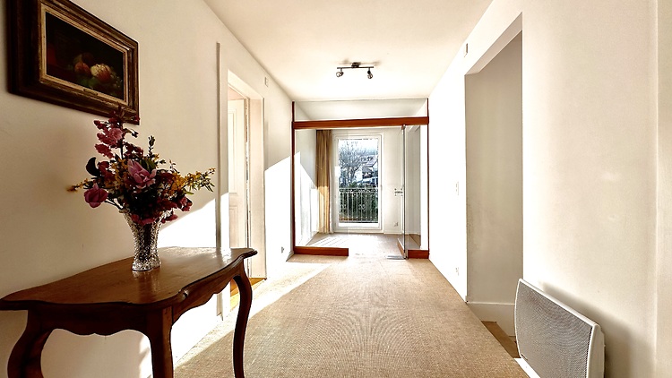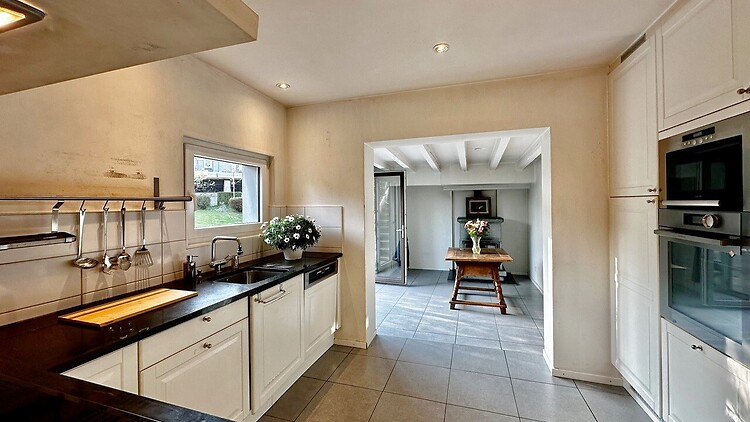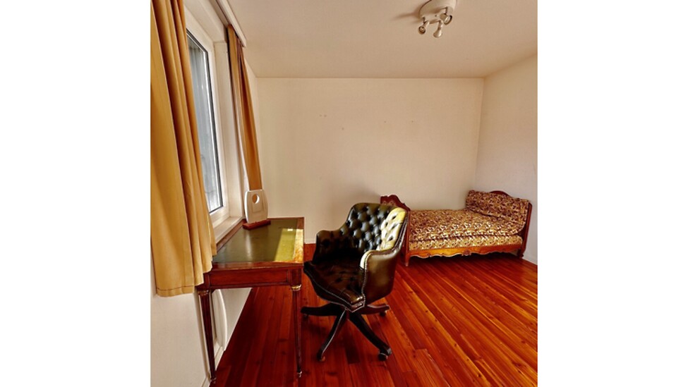 170m², au 1. étage, 3 chambres à coucher, 1 bureau (peut servir comme chambre à coucher), avec cheminée, dans bâtiment ancien, en bon état
