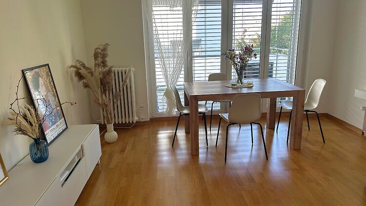 Location de ce bel appartement lumineux et spacieux de 2,5 pièces à Zurich Enge (8002) avec grand balcon donnant sur un jardin partagé.